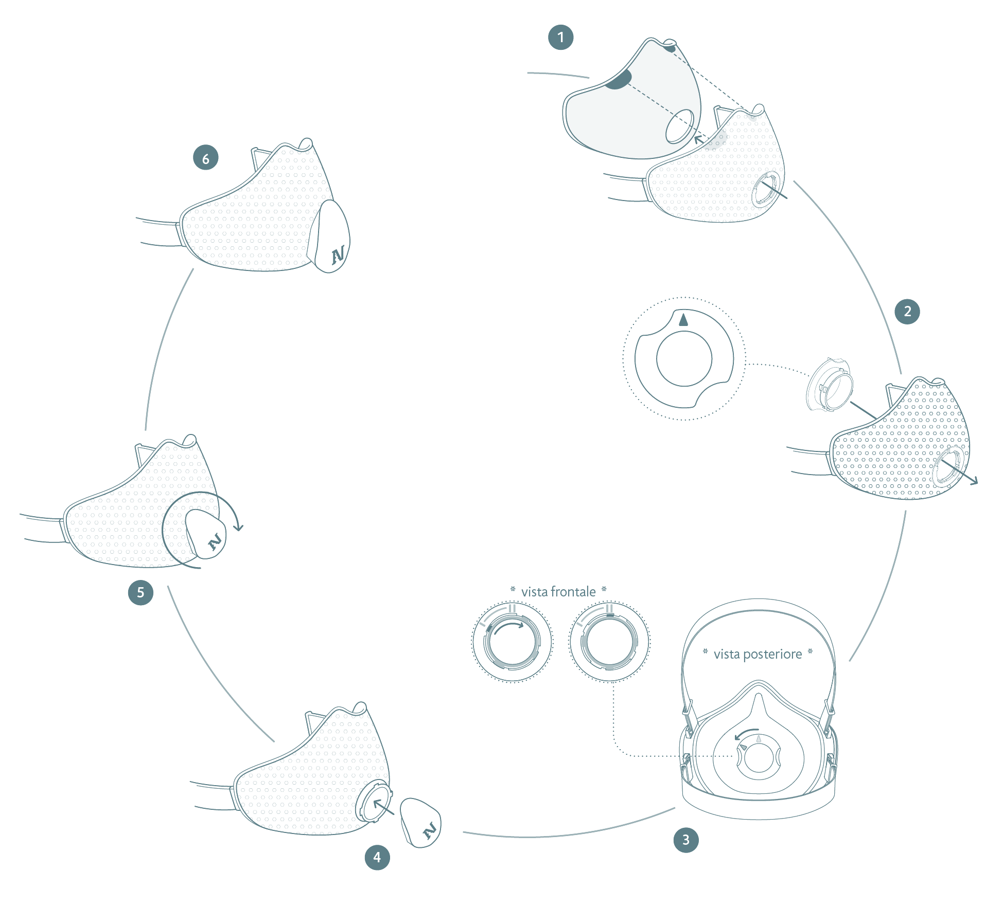 - 如果您想防止呼出的空气未经过滤而直接从防护罩中排出,请将 Covid-19 帽 (8) 从内部插入卡口孔 (4)(注意:安装了 Covid 帽后,您可能会感觉更舒服)呼气时的呼吸阻力)