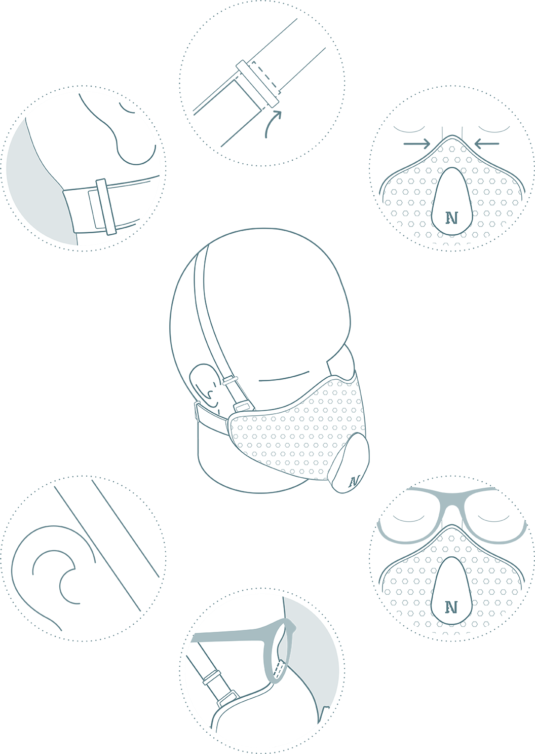 - 将鼻子周围的钢圈塑形,然后拉动鞋带末端,使面罩贴合您的脸部